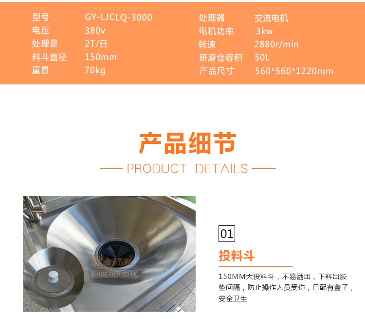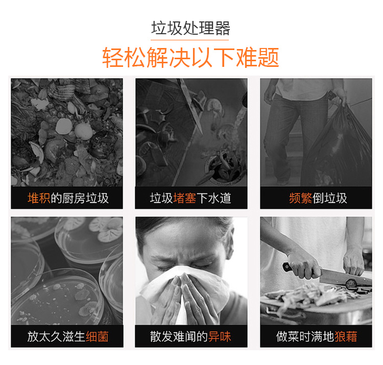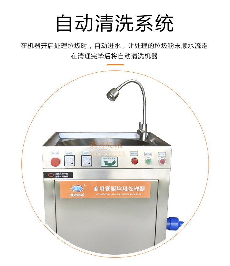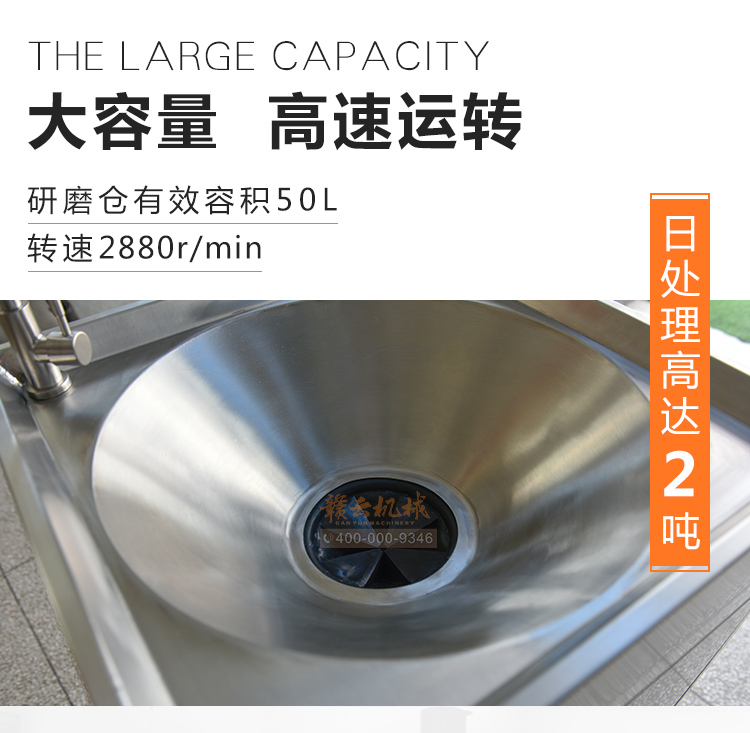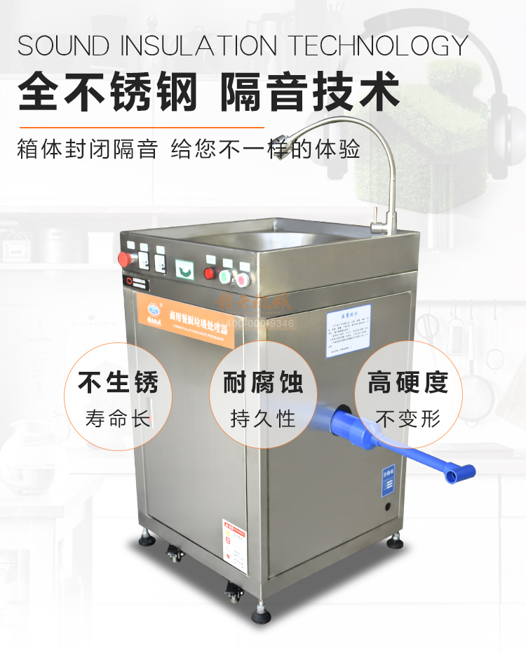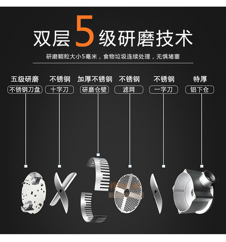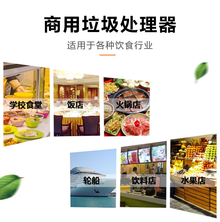 商用垃圾處理器,雙層五級(jí)研磨技術(shù),研磨顆粒大小5毫米,食物垃圾連續(xù)處理,無懼堵塞可處理的垃圾:殘羹剩飯、肉魚骨刺、蔬菜瓜果、蛋殼、茶葉渣、玉米棒芯、牲畜骨頭、硬質(zhì)貝克等食物垃圾