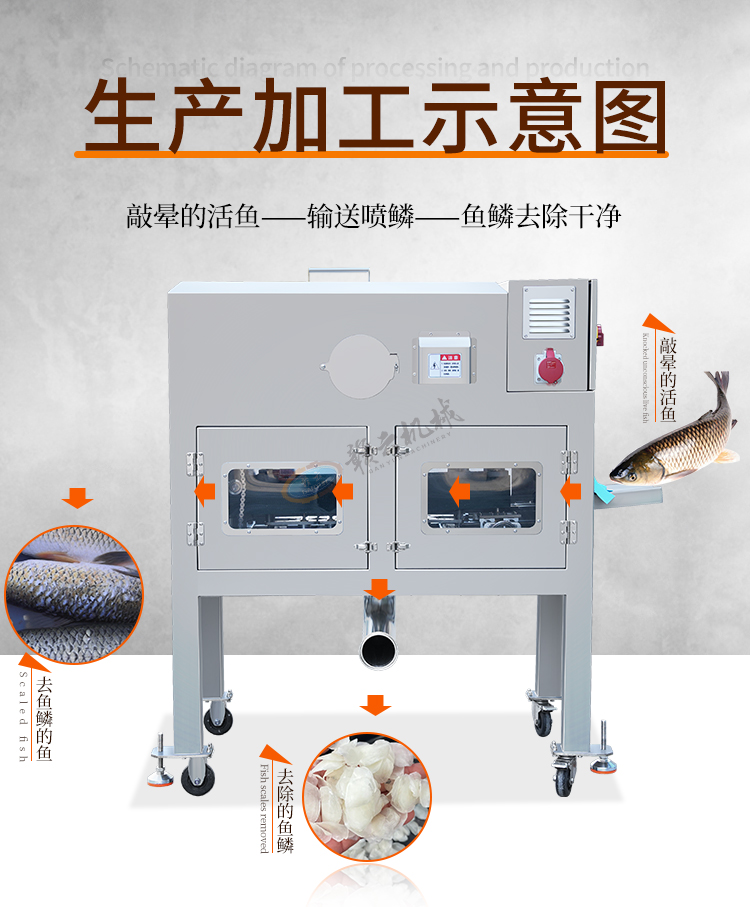 贛云高壓去魚鱗機通過高壓水流的方式將活魚表面的魚鱗沖刷去除干凈,不傷魚皮、不傷魚鰭,可以連續(xù)式操作,提高了去魚鱗的效率,降低了人工成本。去魚鱗機操作簡單,相比傳統(tǒng)人工去魚鱗的耗時耗力效率低下,還需要有經(jīng)驗的刀工技術(shù),使用這臺設(shè)備只需要通過簡單的操作,就可以輕松去除魚鱗。整機采用食品級不銹鋼材質(zhì),設(shè)備整體操作簡單、去魚鱗干凈、加工效率高、適用于多種魚類,并且采用水作為去魚鱗介質(zhì),不會對魚肉造成污染。