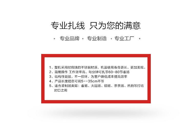 電動(dòng)打結(jié)機(jī),香腸打結(jié)機(jī),腸類自動(dòng)打結(jié)設(shè)備,冬季灌腸打結(jié)好設(shè)備,香腸自動(dòng)打結(jié)機(jī),采用不銹鋼材質(zhì)設(shè)計(jì),打結(jié)長度5-35cm可自由調(diào)節(jié)。進(jìn)料口直接50mm.