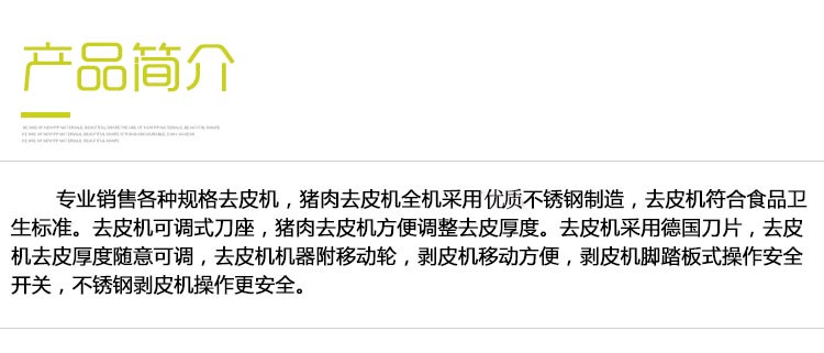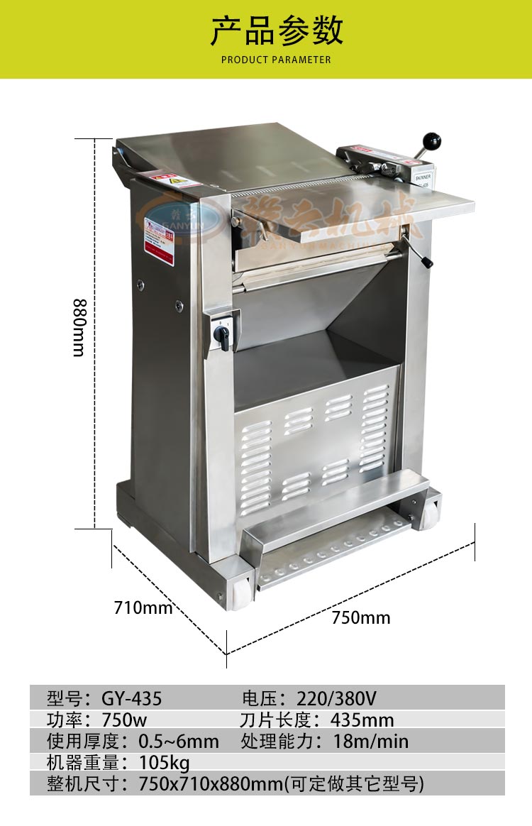 豬肉扒皮機(jī),扒皮用什么好,扒皮機(jī)那個牌子的好豬肉去皮機(jī)扒皮機(jī)采用不銹鋼制造,去皮機(jī)符合食品衛(wèi)生標(biāo)準(zhǔn)。去皮機(jī)可調(diào)式刀座,豬肉去皮機(jī)方便調(diào)整去皮厚度。去皮機(jī)采用優(yōu)質(zhì)刀片,去皮皮厚可調(diào)節(jié),去皮機(jī)附移動輪,移動方便。扒皮機(jī)腳踏板式操作安全開關(guān),操作安全。