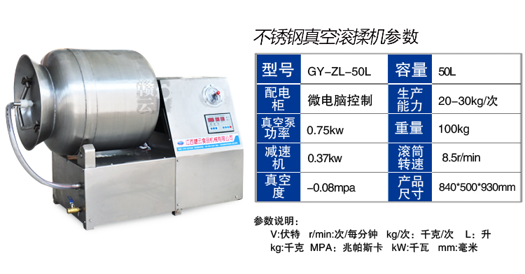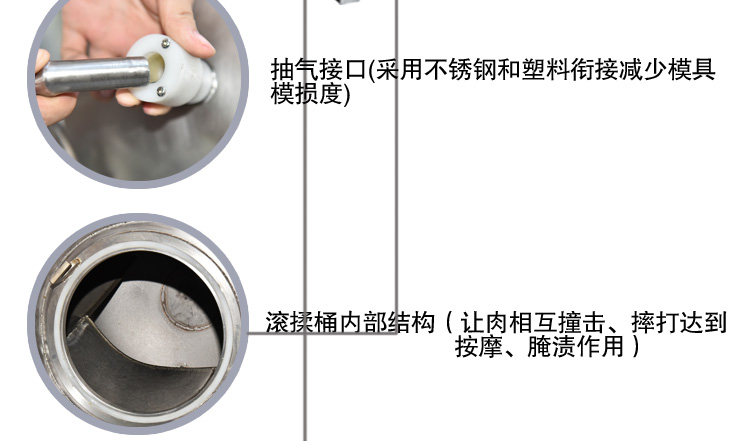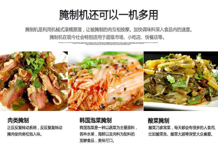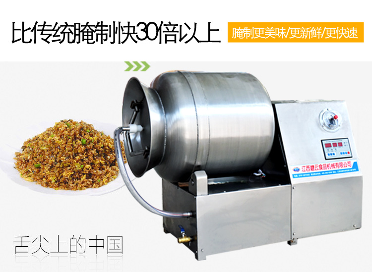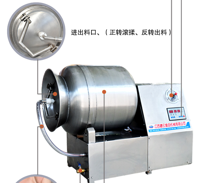 滾揉機可以使肉均勻的吸收腌漬,可以提高肉的結(jié)著力及產(chǎn)品的彈性;可以提高產(chǎn)品的口感及斷面效果;可以增強保水性,增加出品率;可以改善產(chǎn)品的內(nèi)部結(jié)構(gòu),節(jié)能高效。整機采用不銹鋼制造,結(jié)構(gòu)緊湊,滾筒兩端均采用旋壓式封帽結(jié)構(gòu),最大的增加滾筒內(nèi)的摔打空間,使?jié)L揉產(chǎn)品的效果均勻,噪音小,性能可靠,操作簡便,使用效率更高。