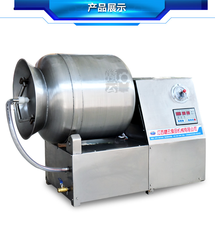 滾揉機除了能加速腌效果外,采用滾揉技術(shù)達(dá)到肉質(zhì)嫩化效果的也是西式火腿加工的重要工序,然肉質(zhì)在常規(guī)的滾揉機械加工過程中常常會因為摩擦滾揉升溫而容易導(dǎo)致肉質(zhì)變質(zhì),因此滾揉的時間需要控制的十分好。贛云真空滾揉機是為了彌補常規(guī)型滾揉機的缺點而進行科學(xué)的設(shè)計,真空狀態(tài)下可以很好的保證肉質(zhì)的質(zhì)量,在經(jīng)過微電腦控制滾揉時間,使得整個滾揉工藝變得簡單化和可快速復(fù)制性。