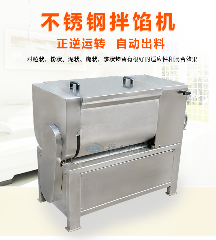 本機采用304不銹鋼材質(zhì)設(shè)計,符合食品衛(wèi)生加工需求,絞龍型攪拌鋼軸可向內(nèi)向外雙向攪拌旋轉(zhuǎn)運動,由倒順開關(guān)控制攪拌方向,適合粘稠度較大物料的攪拌,攪拌過程還對肉質(zhì)起嫩化效果,是肉餡、肉醬、菜餡等攪拌的上好設(shè)備。