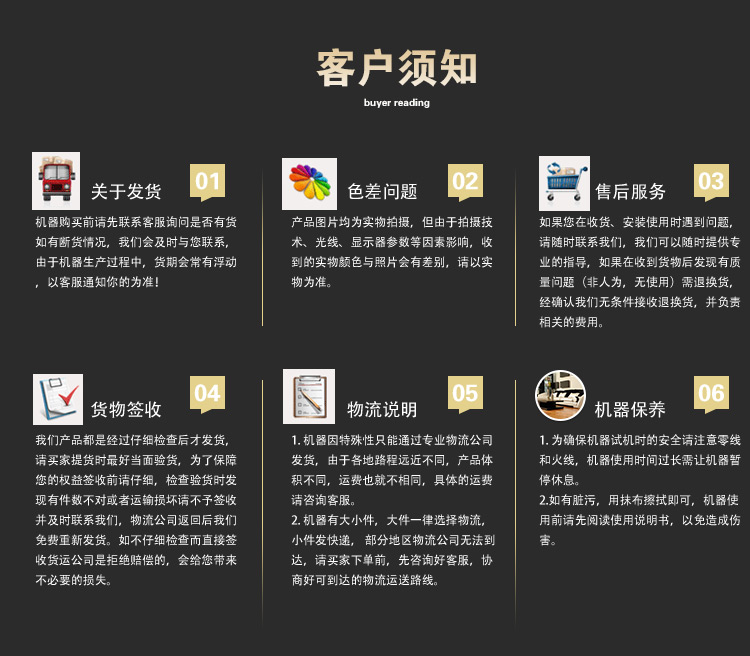 買家必讀 (網(wǎng)站報(bào)價(jià)不含運(yùn)費(fèi)不含稅,開具發(fā)票需加稅點(diǎn),10kg以下貨物可選擇發(fā)快遞,其他貨物由物流托運(yùn)需要自提)