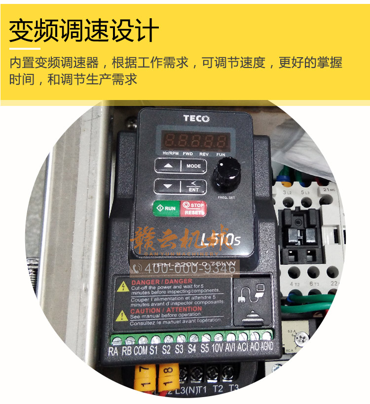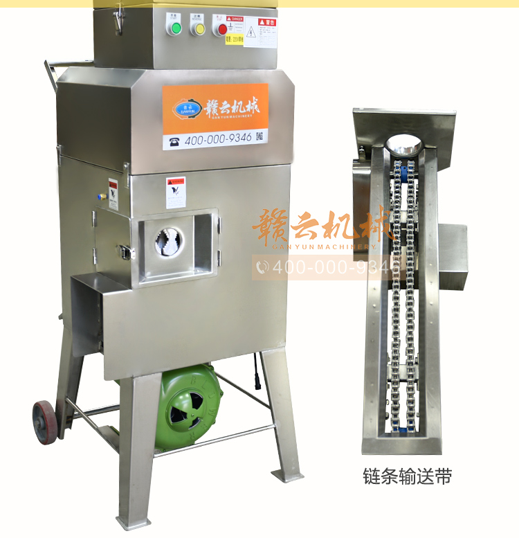入料方便——入料口處配有鏈條進(jìn)給裝置,有效地提高了工作效率(此裝置可根據(jù)需要裝卸)。