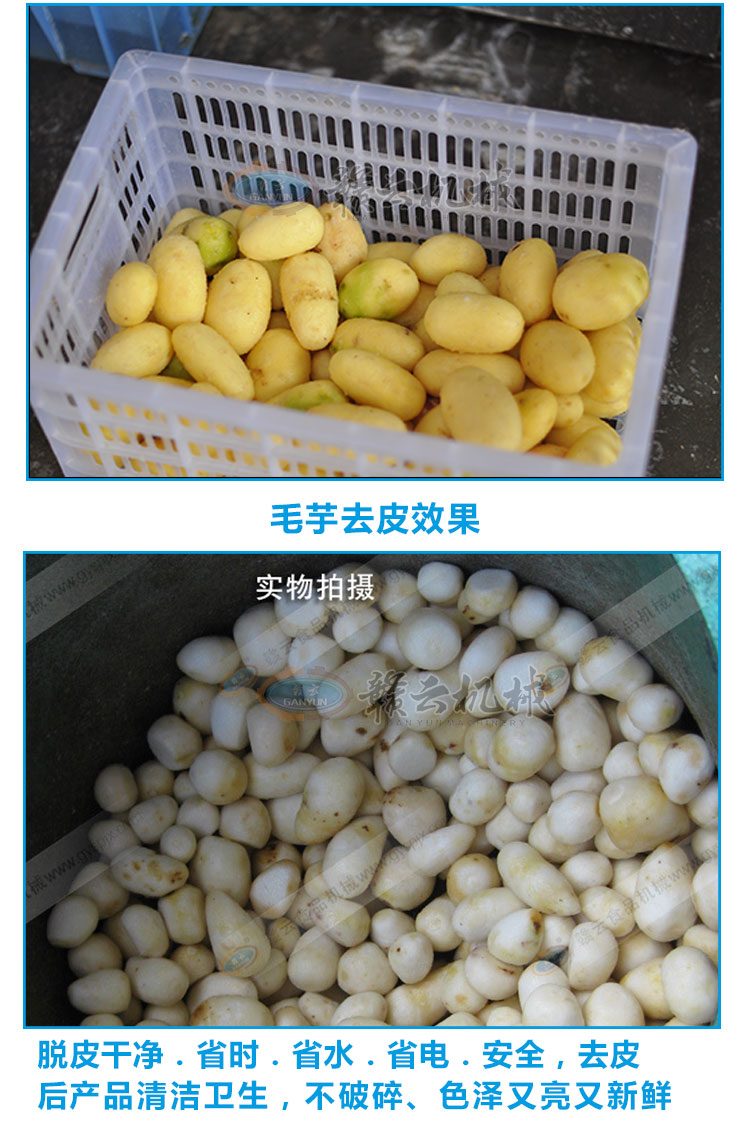 本機器具有良好的防銹.防腐.耐磨損等特點.去皮快速,清潔衛(wèi)生,可以脫毛芋頭皮,土豆(馬鈴薯)皮等,性能穩(wěn)定操作簡便,安全,可確保去皮質(zhì)量,且省電省水省時間 適合農(nóng)產(chǎn)品加工單位及個體加工經(jīng)營,脫皮后的芋子.土豆等,可以散裝或袋裝在各超市菜市場 分銷批另.產(chǎn)品名稱:毛芋土豆脫皮機