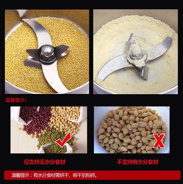 贛云系列多功能粉碎機(jī)采用純銅高速電機(jī)帶動(dòng)粉碎刀片將物料快速打成粉末,可用于粉碎五谷、雜糧、田七、阿膠、白叁等,一般粉碎時(shí)間1-2分鐘即可,新款粉碎機(jī)改保險(xiǎn)絲為空氣過(guò)載保護(hù)器,使用更安全,我廠提供的粉碎機(jī)有100克-1000克不同型號(hào)的多功能粉碎機(jī)。