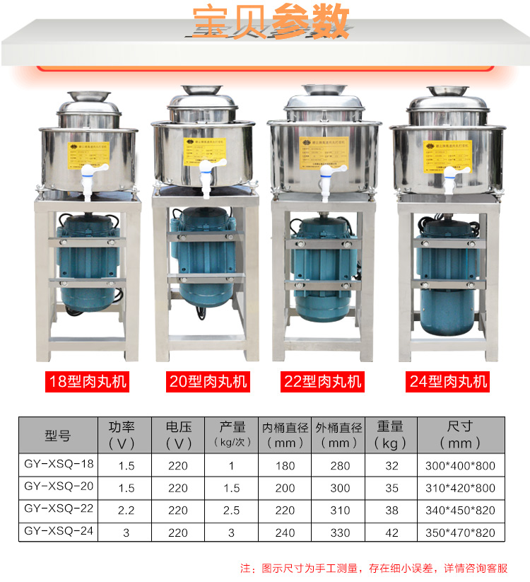 贛云牌新款全不銹鋼肉丸機(jī),18型肉丸機(jī)采用全不銹鋼材質(zhì),在舊款全不銹鋼肉丸機(jī)的基礎(chǔ)上給支撐架加粗加厚,用不銹鋼蓋,打漿雙桶,刀柄刀片均采用不銹鋼材質(zhì)。打漿桶裝肉量1L,一次可打肉漿1-2斤左右,采用2800r/min高速電機(jī),故稱之為高速肉丸機(jī)。