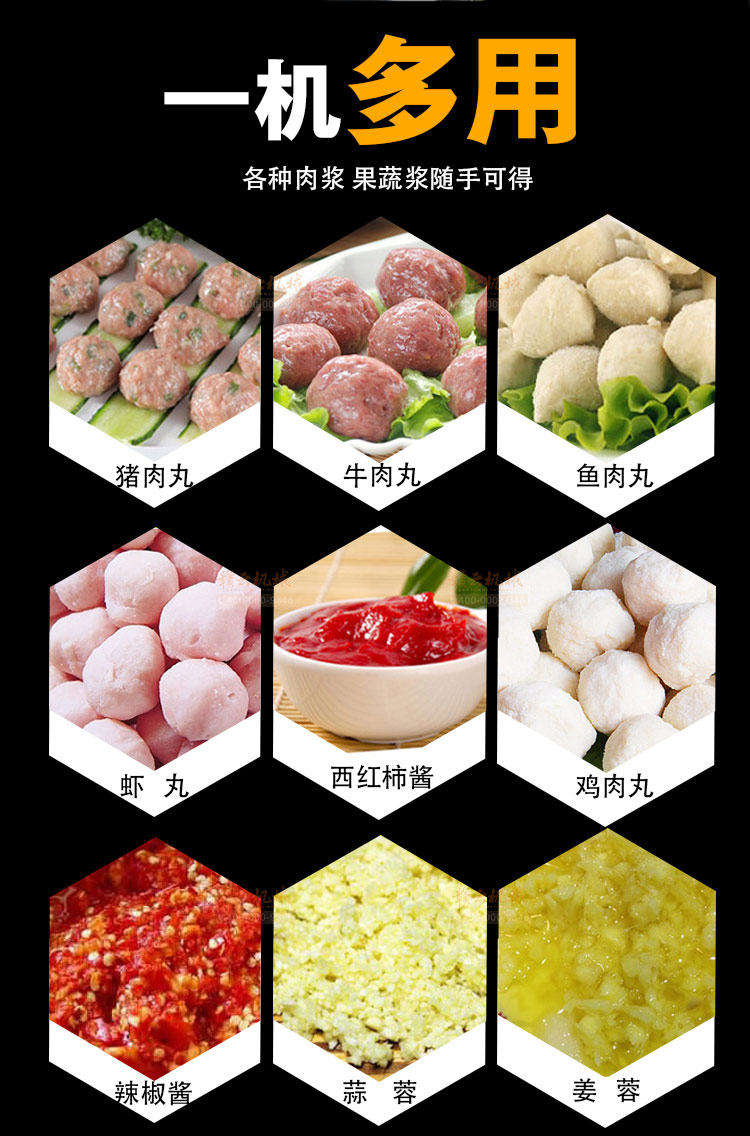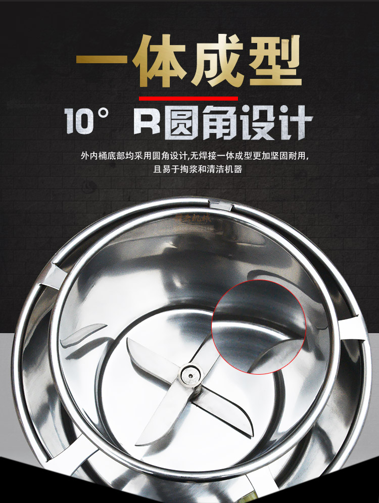 贛云牌肉丸打漿機采用全不銹鋼材質(zhì),默認配用1.5kw國標銅線贛云牌電動機,打漿刀片和刀架、攪拌圈、蓋子、支持架、打漿雙桶、軸承、螺絲均采用不銹鋼材質(zhì),是正真意義上全不銹鋼