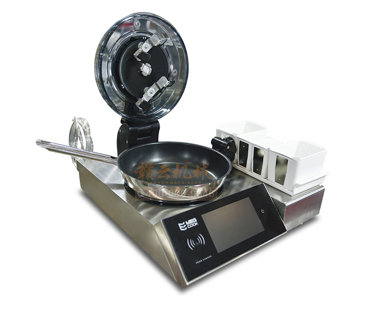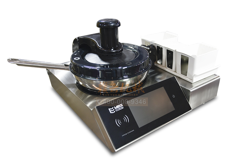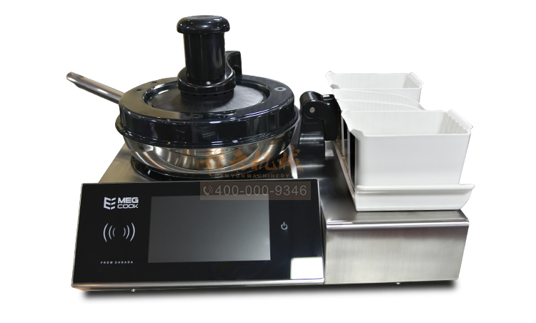 全自動智能烹飪機器人,無需人員輔助,自動加油、加水、加料;機器自己炒菜, 便攜ic卡,菜單只需一張ic卡即可讀入,分時入料,完全根據(jù)中國菜譜要求,在適當?shù)臅r間加入對應的材料;智能溫控,不糊鍋,不產(chǎn)生油煙,更健康。