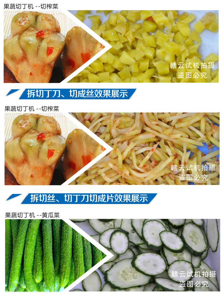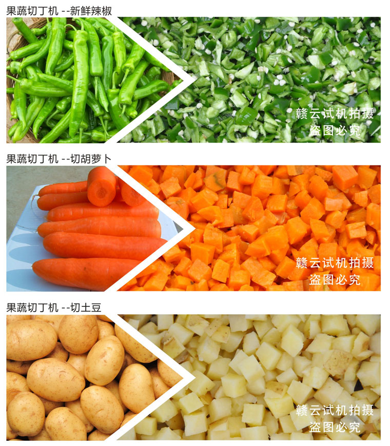 GY-QD-130型專用切丁機主要部件采用鋁合金和不銹鋼材質(zhì),以保證長期工作不生銹、不腐蝕、無毒、無害,符合食品衛(wèi)生加工要求,適用于脫水蔬菜、速凍蔬菜加工及食品醬菜行業(yè)加工各種根、莖類蔬菜成小立方體或長方體形狀,該機采用復(fù)合刀具,一次成型,形狀規(guī)則、切片光滑,成型效率高,操作方便、能耗低,深受食品加工伙伴青睞。