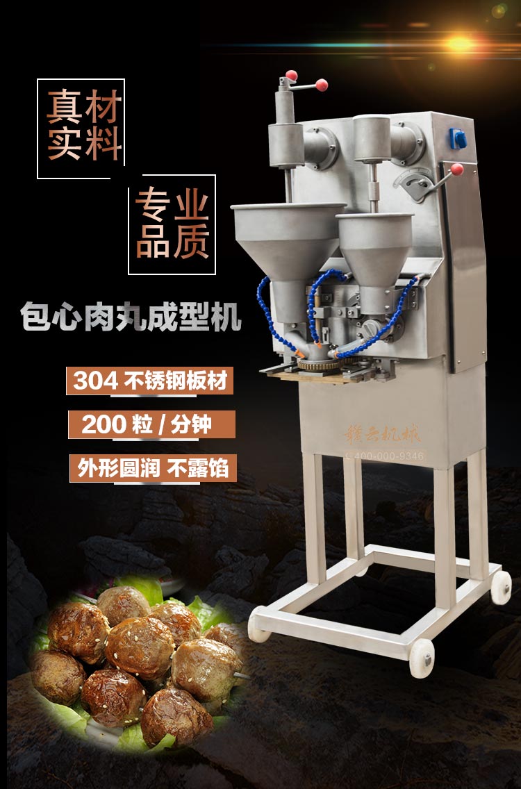2014冬季新款包心肉丸機,第三代肉丸包心機保留了二代包心機的全部優(yōu)勢外,在包心成型速度上做了本質(zhì)上的突破,每分鐘成型200粒的速度是二代包心機的兩倍,機身表面接觸食物部位升級,特殊處理更耐氧化和腐蝕,由于速度上的重大突破,因而稱之為第三代包心肉丸機。