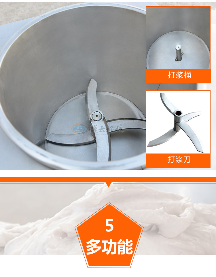 高速打漿機選用全不銹鋼制作,開機2-3分鐘即可完成打肉、配料,攪拌成漿。針對魚肉豬肉的纖維組織,高速生產(chǎn)過程中改善了肉質(zhì)脂肪纖維,生產(chǎn)出的丸子外表光滑細嫩、低脂、口感爽脆,彈性好,韌性好,是潮州魚、肉丸的專用打漿設備。此款肉丸高速打漿機還可以連續(xù)投料打漿,效率高,打漿效果好,根據(jù)肉丸生產(chǎn)產(chǎn)量需求可定做,因此深受肉丸加工廠家青睞設備!