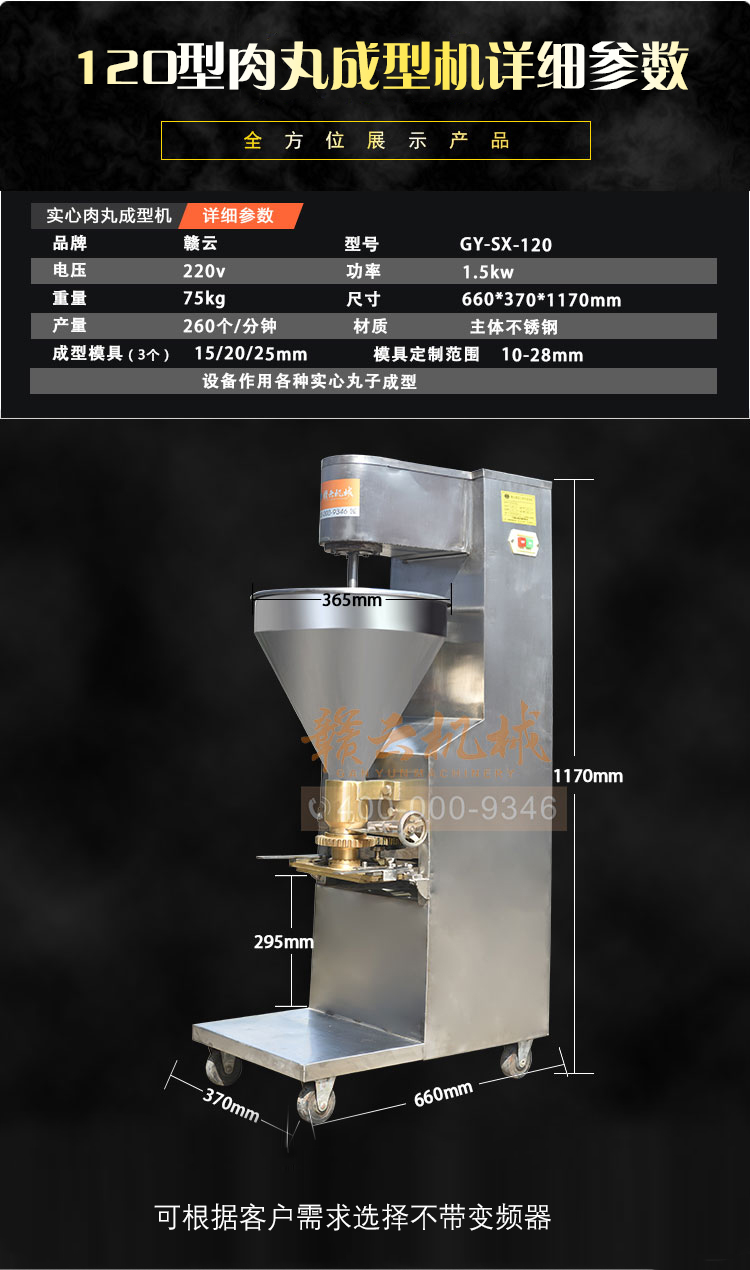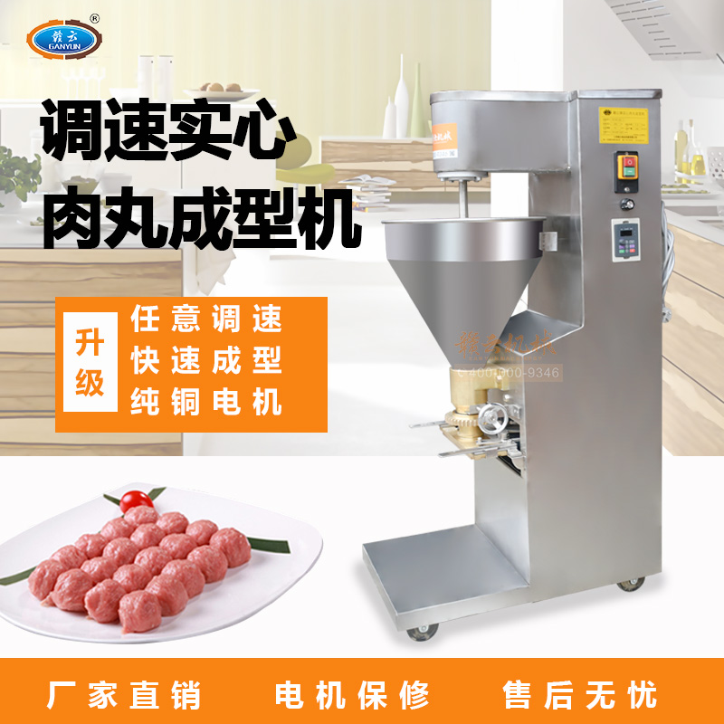 調(diào)速肉丸成型機是在實心肉丸成型機的基礎(chǔ)上,改開關(guān)控制為變頻數(shù)字調(diào)速控制,成型速度可變。是做實心豬肉丸、魚肉丸、牛肉丸成型不二選擇。詳細(xì)技術(shù)參數(shù)可參考實心肉丸成型機GY-SX-120型肉丸成型機。