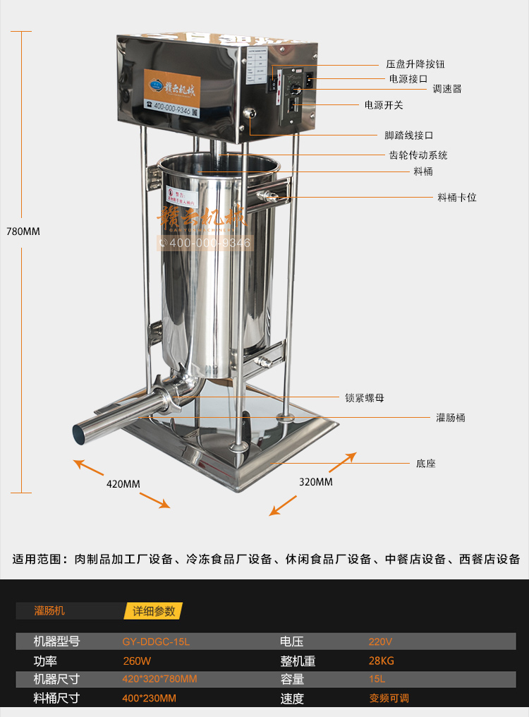 肉制品前處理->專用灌腸設(shè)備->電動灌腸機(jī)15L | |||||||