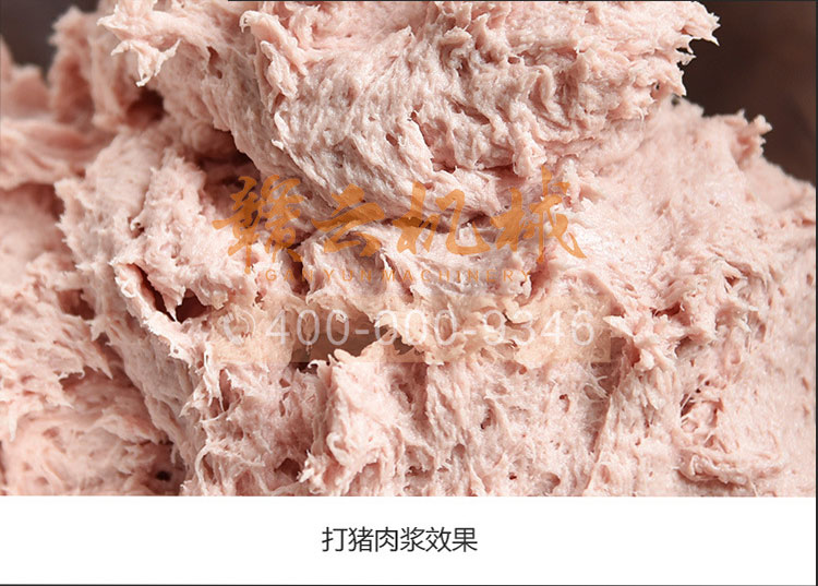 所產(chǎn)肉漿比高速類打的肉漿富有口感,不同普遍效果,工作穩(wěn)定,產(chǎn)量高質(zhì)量好,升溫低,其工作原理調(diào)速使用先慢揉將肉抱團(tuán)拉絲,慢慢加工成泥漿后無級變速拍打,使肉類纖維中發(fā)貨最大的吸水量和重組織性強(qiáng),所產(chǎn)肉丸制品等松脆有彈性,能漂浮于水面,蒸煮不裂開,火鍋上佳。