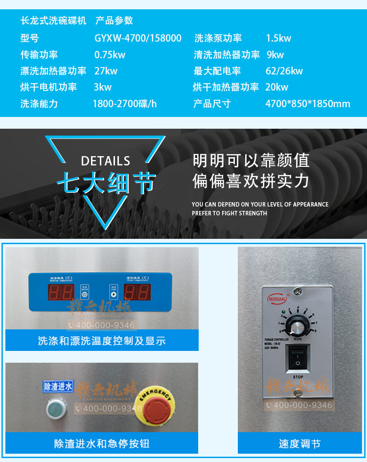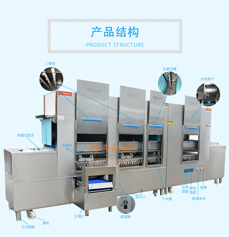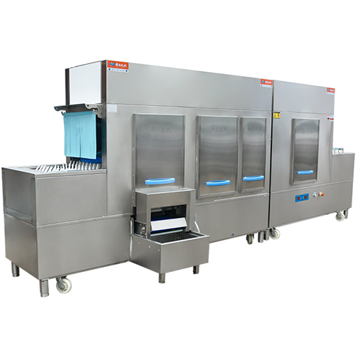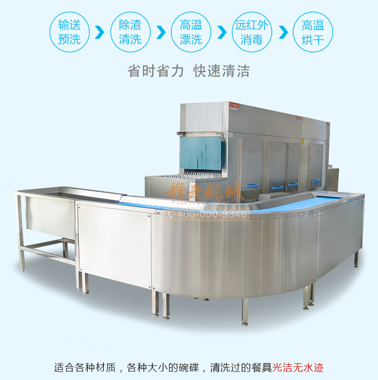 長(zhǎng)龍式洗碗機(jī),集除渣、洗滌、漂洗、消毒、烘干設(shè)備。功能卓越,氣質(zhì)不凡,備受用戶青睞。 贛云秉承綠色環(huán)保的產(chǎn)品理念,各系列產(chǎn)品均選用特殊材料精工制作,解決了在高溫消毒、高溫烘干環(huán)境下,撥齒“變形、異味、微毒”的問題,真正使洗碗機(jī)行業(yè)在“長(zhǎng)龍式遠(yuǎn)紅外高溫消毒、高溫烘干”領(lǐng)域不再是一句空話。