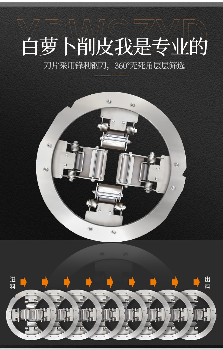 用于白蘿卜的去皮,仿人工削皮設(shè)計。