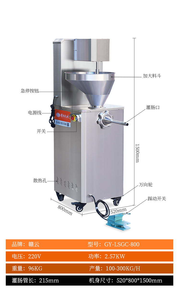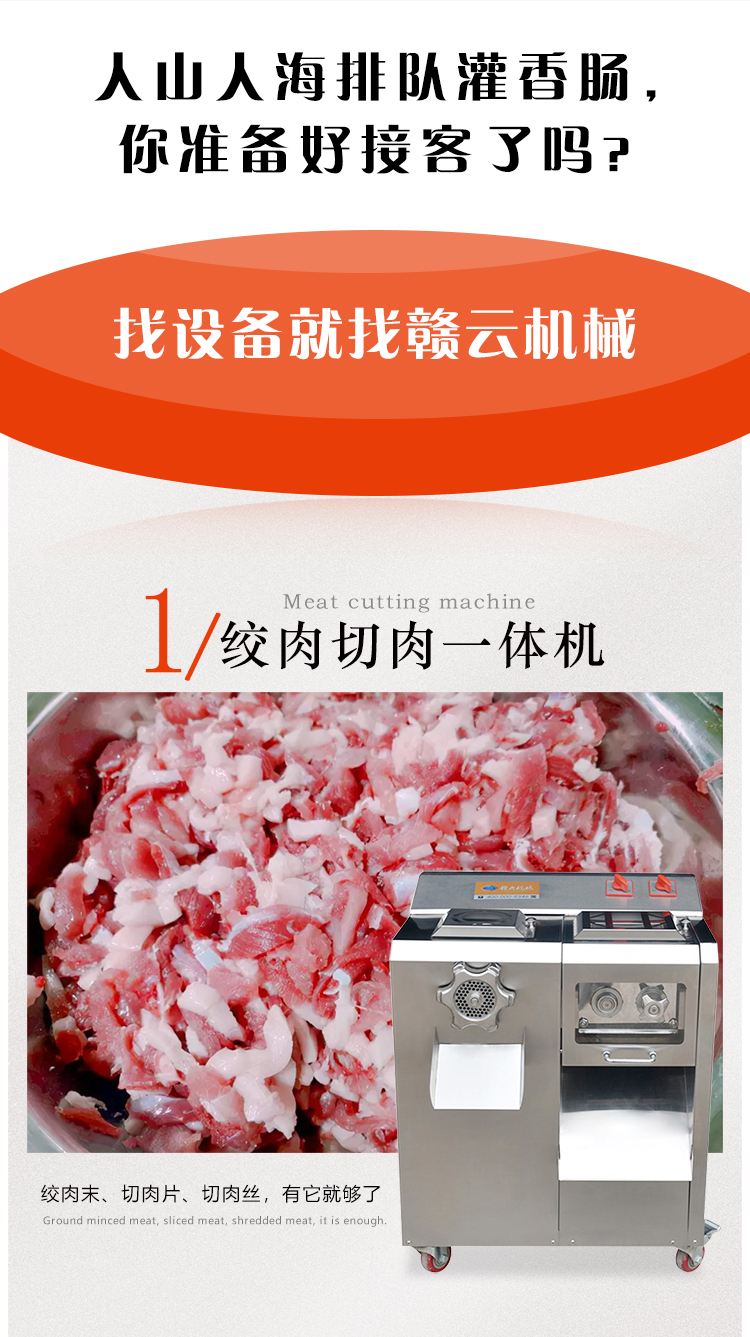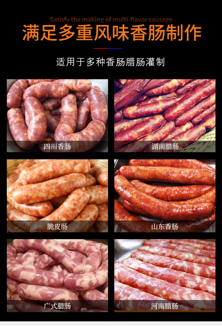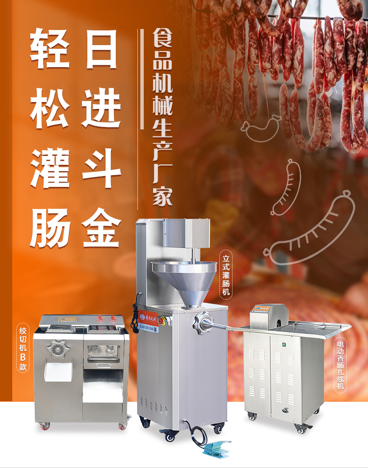 贛云機(jī)械專業(yè)從事肉類加工設(shè)備,灌香腸機(jī)械的研發(fā)和生產(chǎn),專用于灌香腸的產(chǎn)品有香腸設(shè)備,火腿腸設(shè)備,成套香腸設(shè)備,整套香腸設(shè)備,灌腸加工設(shè)備,灌腸扎線機(jī)器等,這套設(shè)備滿足多種類型的香腸臘腸灌制