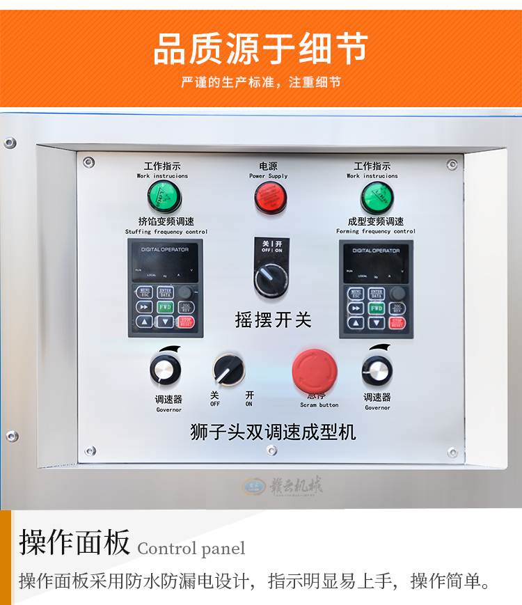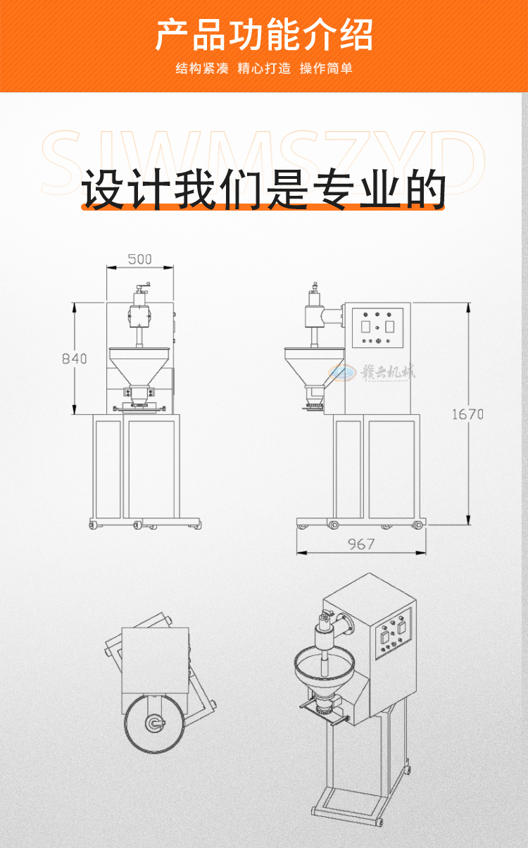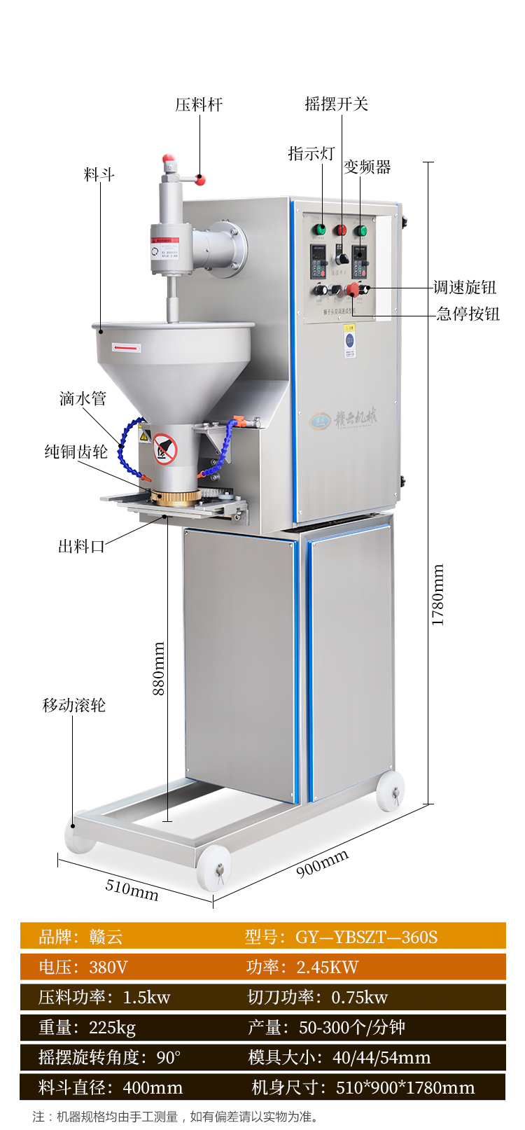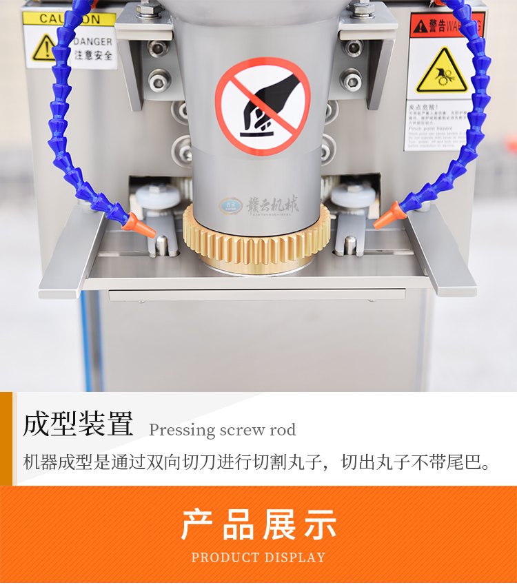生產大肉丸、獅子頭、四喜丸子等,機器左右搖擺下料防止物料堆積。