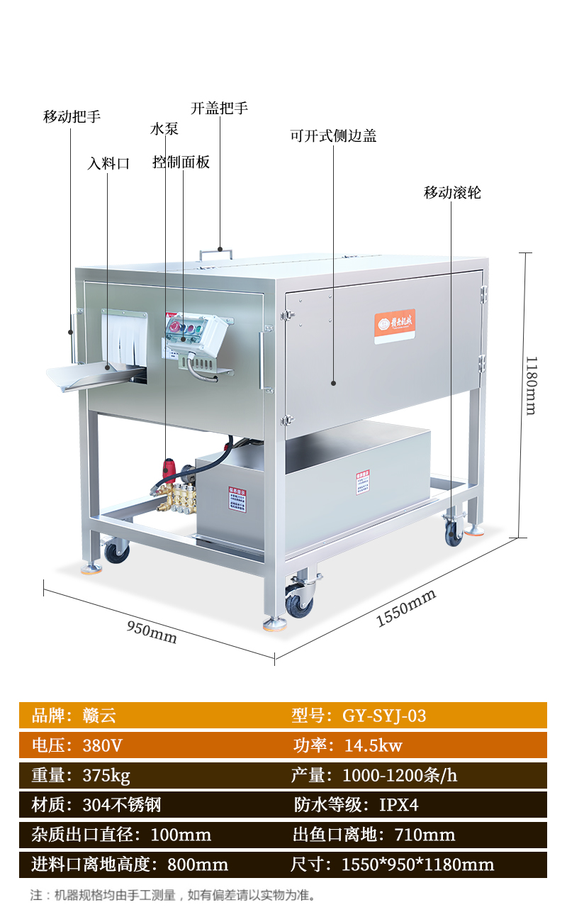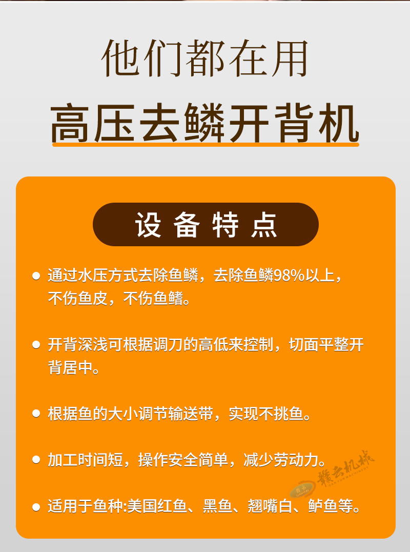 通過高壓去除魚鱗,同時能對魚進行開背處理, 不傷魚皮不破魚膽。