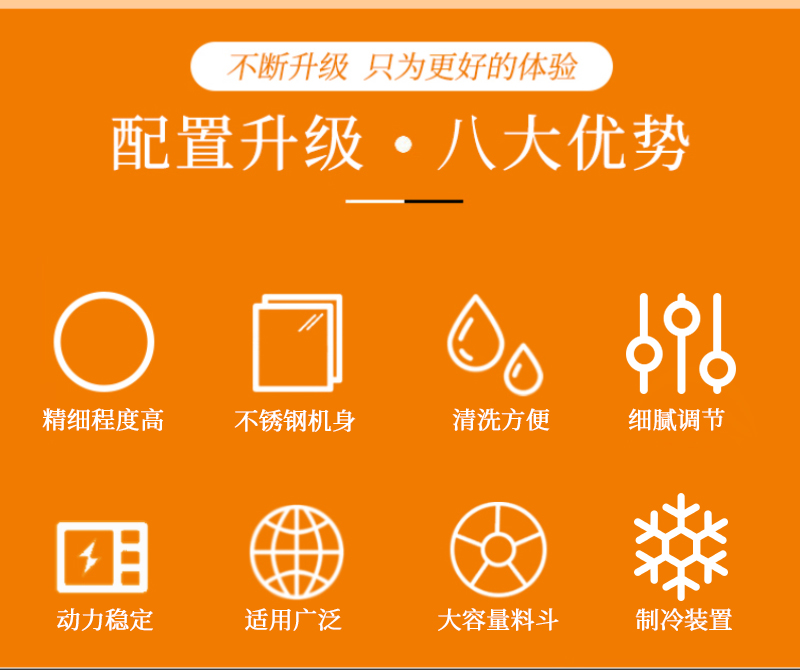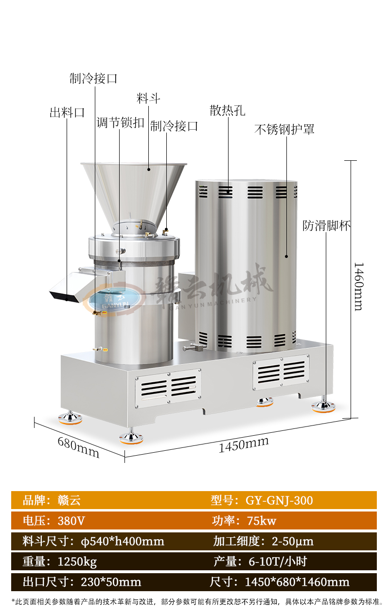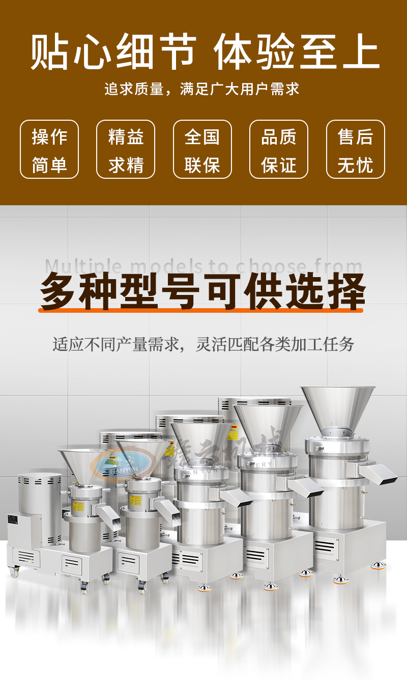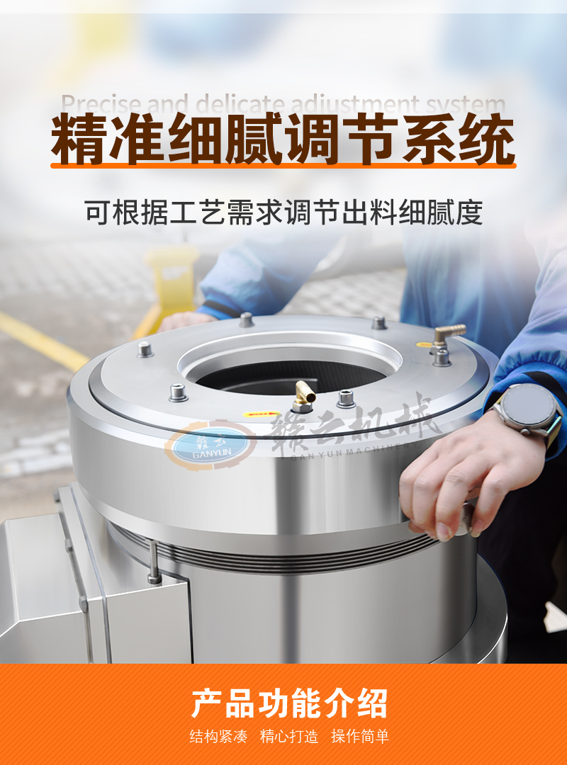 專為食品等原料加工設計,配備三層磨齒精磨技術,支持肉漿/堅果/藥材等上百種物料加工,可調節(jié)式細膩度。