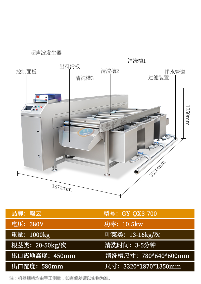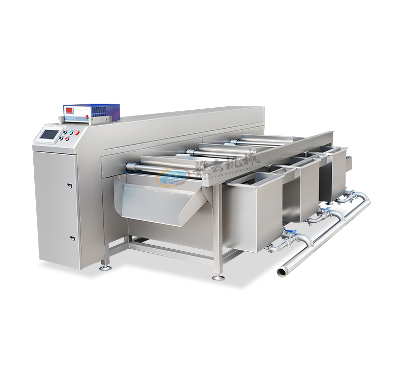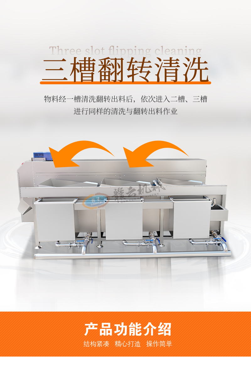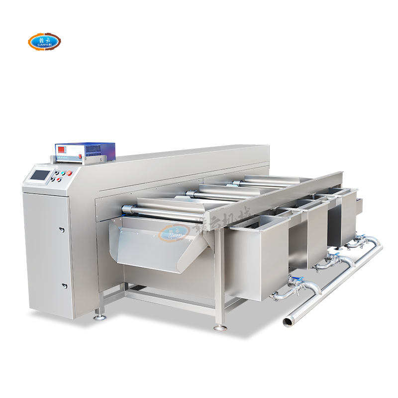 贛云三槽連續(xù)清洗機(jī)(定制款),是專為規(guī);逃们逑醇庸ご蛟斓亩ㄖ苹O(shè)備,采用食品級(jí)304食品級(jí)不銹鋼機(jī)身,符合食品安全生產(chǎn)標(biāo)準(zhǔn)。設(shè)備采用三槽翻轉(zhuǎn)連續(xù)式清洗結(jié)構(gòu),可實(shí)現(xiàn)物料一槽清洗后自動(dòng)翻轉(zhuǎn)出料,依次完成多道清洗工序,支持搭配超聲波發(fā)生器,通過渦流沖刷與超聲波空化效應(yīng),有效清潔食材表面雜質(zhì),不損傷食材表皮。配備過濾篩瀝水槽,可沉淀污物、實(shí)現(xiàn)水復(fù)用,搭載PLC智能控制面板,清洗參數(shù)可靈活設(shè)定,操作便捷,運(yùn)行穩(wěn)定,是食品加工的配套設(shè)備。