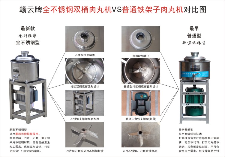 最新款全不銹鋼型肉丸機(jī)vs不銹鋼型肉丸機(jī)vs普通型肉丸機(jī)細(xì)節(jié)對(duì)比圖: