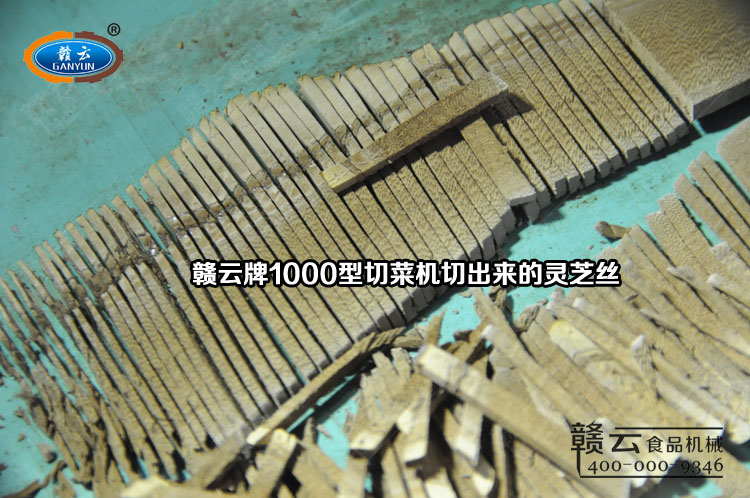 將靈芝片放入切菜機豎切入口內(nèi):即為輸送帶上