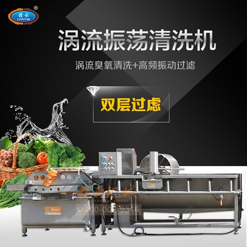 渦流清洗機是我公司開發(fā)的一款新型的水果、蔬菜清洗加工機械。這臺設備與常規(guī)款設備有2大不同點,一、小水箱加去雜裝置,可以把清洗時排除的物料殘渣排出到設備外面,二、本機采用聚酯絲網(wǎng)帶輸送,解決了金屬網(wǎng)帶在運行過程中因摩擦而產生的黑水和金屬碎屑現(xiàn)象。整體設備故障率低,結構緊湊,操作方便,對果蔬清洗效果好,不損傷物料,而且濾水性好,產能高。