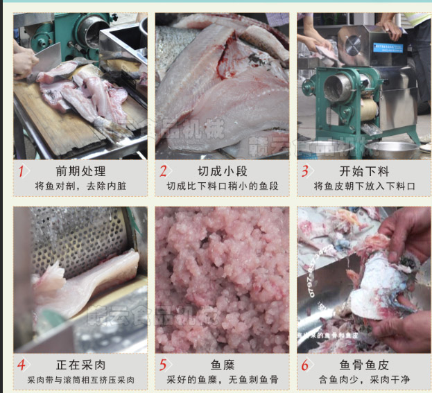 去刺是使用采肉機(jī)將魚體皮骨除掉而把魚肉分離出來(lái)。國(guó)內(nèi)使用較多的是滾筒式采肉機(jī)。