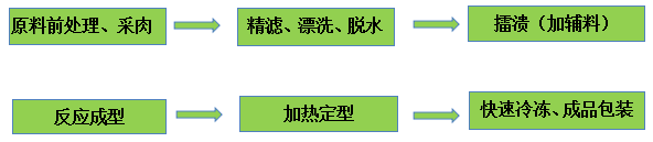 成型操作要與斬拌操作連接進(jìn)行,兩者之間不能長(zhǎng)時(shí)間間隔,否則打漿后的魚糜在室溫下放置會(huì)因凝膠化現(xiàn)象而失去粘性和塑性而無法成型。成型溫度一般在50℃左右反應(yīng)10min。