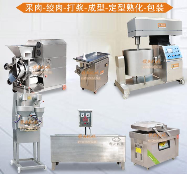 丸子加工的成套設(shè)備有:魚肉采肉機(jī)——立式不銹鋼絞肉機(jī)——350型液壓式打漿機(jī)——第三代肉丸包心機(jī)(實(shí)心丸子、包心丸子、貢丸機(jī)器、多功能丸子設(shè)備)——溫控雙加熱水槽——雙室真空包裝機(jī)。