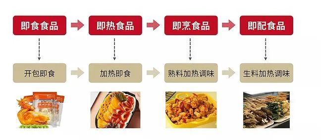 按食用方式:分為即食食品、即熱食品、即烹食品、即配食品。